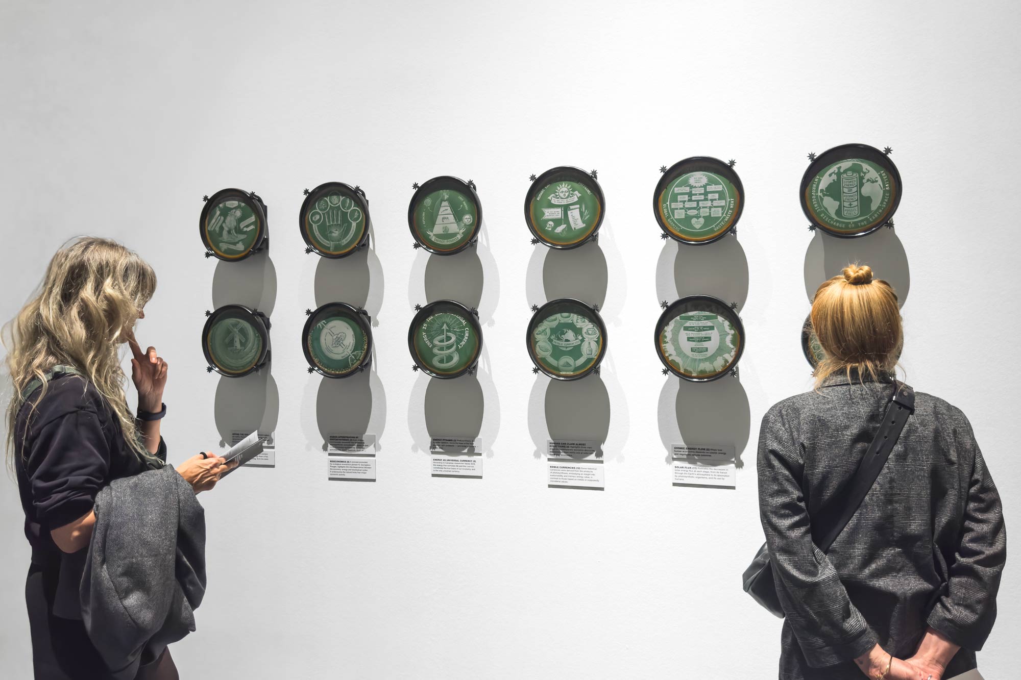 Through an economic lens, this series of illustrated ceramic plates explores how solar energy circulates through the biosphere as a primary life-supporting value. Photosynthetic organisms convert solar energy into organic matter, generating the carbon compounds that form the basis of life on Earth. Energy from the Sun is the basis of the entire food chain and fuels human activities, such as gathering, hunting, fishing, agriculture, cooking, heating, and building. This investigation examines the terrestrial metabolization of solar energy as a means to reconsider the concept of sustainability. This artwork explores how heterodox economic representations could inform governance to achieve lighter ecological footprints and sustainable human coexistence within ecosystems.